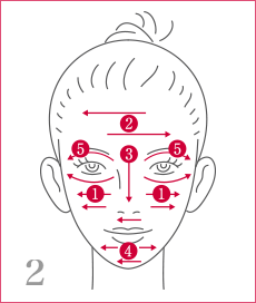 按照①~⑤的順序,用掌心輕柔、緩慢地塗抹到全臉。