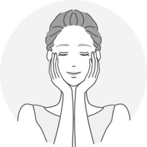 ④使用整個掌心,從額頭內側朝著外側均勻塗抹,使滋潤充分吸收。