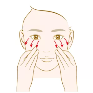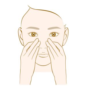 ② 用中指指腹將產品輕輕塗抹到眼頭、眼尾、鼻翼和