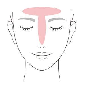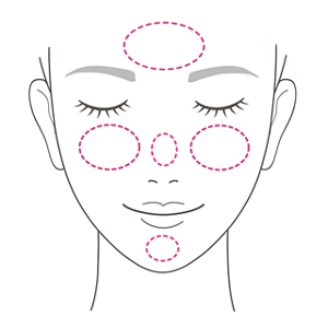 於額頭、雙頰、鼻子、下巴塗開。