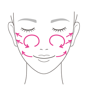 在雙頰打圈塗開後,打橫推開,唇周位置由下巴向上塗抹。