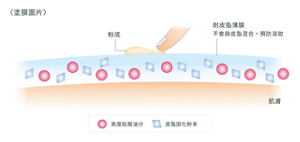 注入最佳份量的高度貼服油分,使粉底自然地融合,令粉底能均勻地緊貼肌膚。另添加皮脂固化粉末,使美麗妝效更加持久。