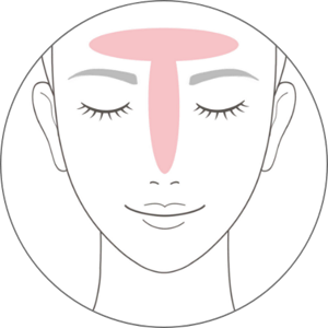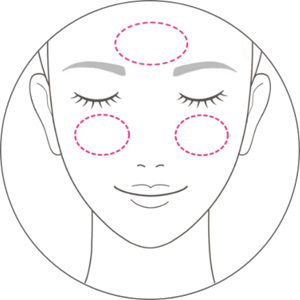 塗抹於額頭、雙頰、鼻子、下巴。
