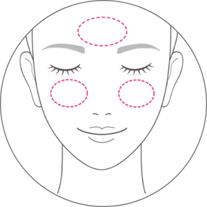 點於雙頰和額頭。