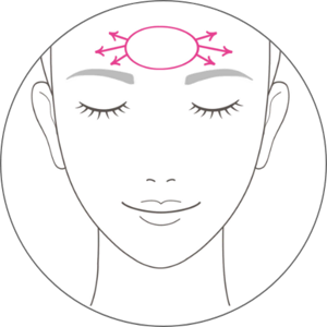 由中央開始大幅度塗抹額頭,逐少向髮際推開。