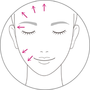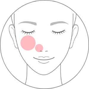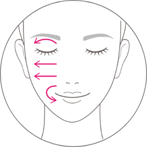 先從面頰向外輕輕抹開,眼周和唇周肌膚也同樣輕柔地塗抹。