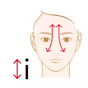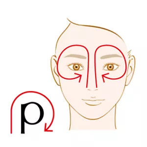 ①在鼻子的側面(從眉間到嘴角),以中指上下滑動塗抹。