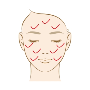 鼻部:從鼻中央以及兩側用兩手中指塗抹滑過。